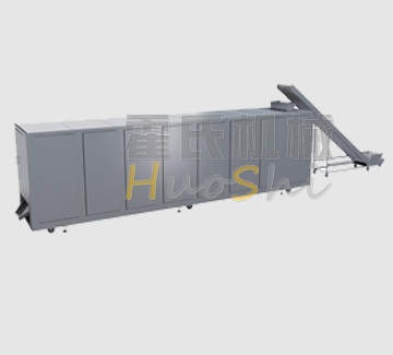 物料由加料器均勻地鋪在網(wǎng)帶上,網(wǎng)帶采用12-60目不銹鋼絲網(wǎng)。由傳動裝置拖動在干燥機(jī)內(nèi)移動。干燥機(jī)由若干單元組成,每一單元熱風(fēng)獨立循環(huán),部分尾氣由專門排濕風(fēng)機(jī)排出,廢氣由調(diào)節(jié)閥控制,熱氣由下往上或由上往下穿過鋪在網(wǎng)帶上的物料,加熱干燥并帶走水分。網(wǎng)帶緩慢移動,運(yùn)行速度可根據(jù)物料溫度自由調(diào)節(jié),干燥后的成品連續(xù)落入收料器中。上下循環(huán)單元根據(jù)用戶需要可靈活配備,單元數(shù)量可根據(jù)需要選取。